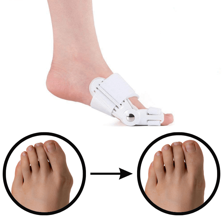 The corrector is a splint that is put on the foot to gently pull the big toe outwards and realign it to its original shape.